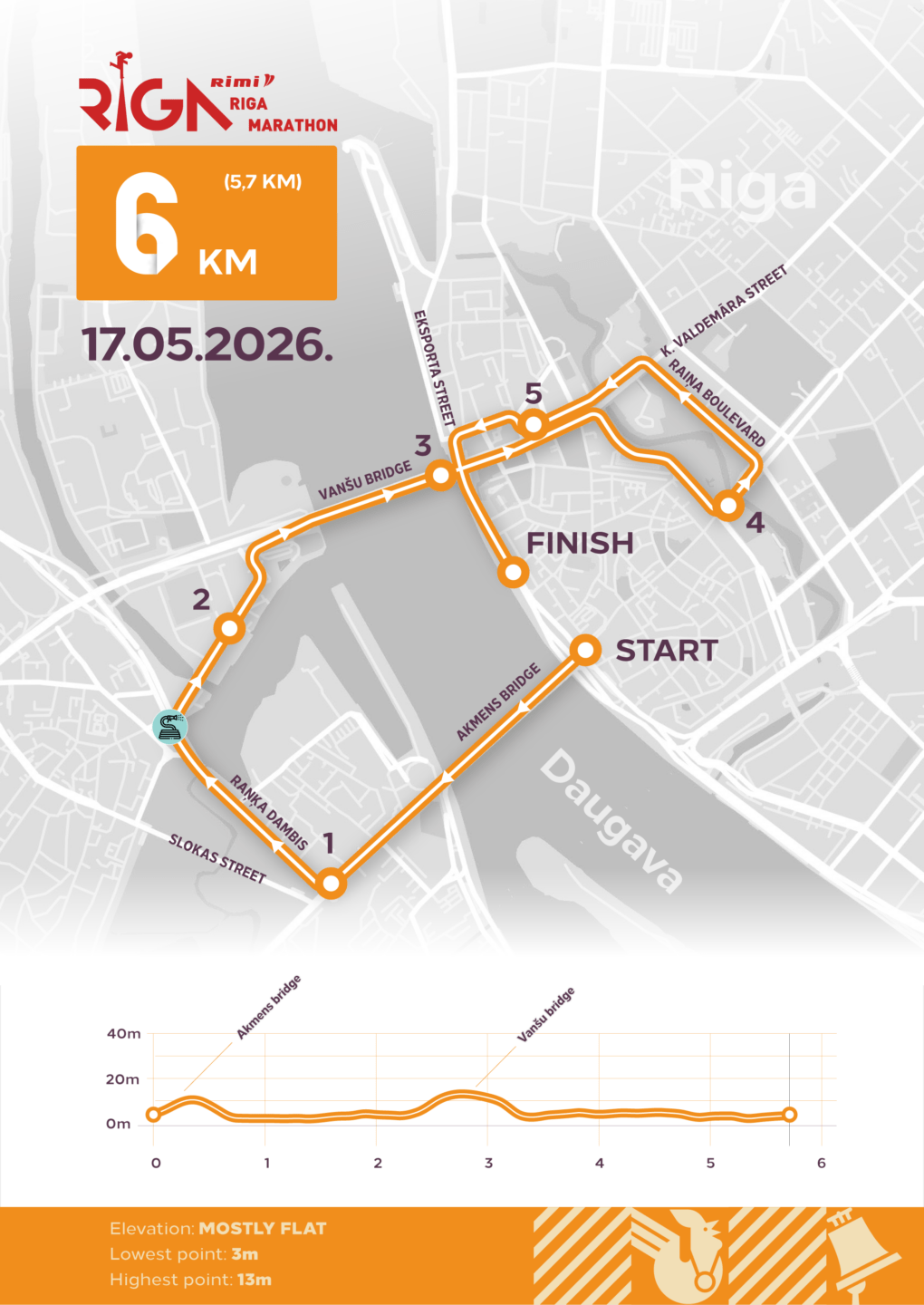 Lai organizētu skrējēju plūsmu, 6 km starts tiks sadalīts divos starta laikos. Tavs starta laiks būs norādīts uz starta numura.